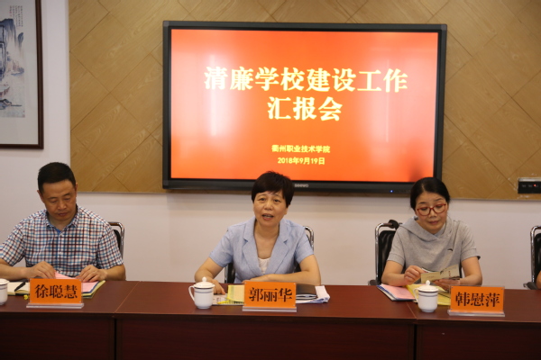 郭丽华对我校开展全面推进“清廉学校”建设工作,切实加强党风廉政建设和纪检监察工作所取得的成绩表示肯定和赞赏,对学校传承优良传统、尊师重教、严格管理、关爱教师、关心学生成长等方面给予高度评价,并“最多跑一次”改革建设精神在我校落地情况、加强基层党建工作、大学生思想政治工作、二级学院院务监督小组建设工作等情况进行了深入了解和指导。