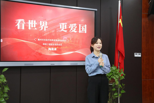 “在杜伊斯堡的几所中学,7年级以上的学生可以选修汉语。德国青少年们觉得中文很有意思,汉语就像是一个宝藏,让他们为之着迷。同学们踊跃发言,用中文讲述自己的‘中国梦’:学中医、吃中国菜、到中国旅游、交中国朋友……”9月21日,一场热血宣讲正在进行,衢职院留学归国的陶莉莉与衢州市实验学校悦溪校区的同学们分享着她出国留学时的亲身经历与所见所闻,虽然,见证了祖国在世界上的影响力逐步增强,但是,面对错综复杂的国际形势、敏感的周边环境、艰巨繁重的改革发展稳定任务,“我们还必须始终保持高度警惕,” 陶莉莉说,“少年儿童是祖国的未来、民族的希望,关系到民族的兴旺和国家的前途,爱国主义教育必须从娃娃抓起,必须旗帜鲜明、毫不含糊。”帮助孩子们认识全球环境的深刻变化,认清我国改革发展稳定面临的新情况新问题新挑战,给孩子们心灵埋下中国特色社会主义四个自信的种子,引导他们扣好人生第一粒扣子。