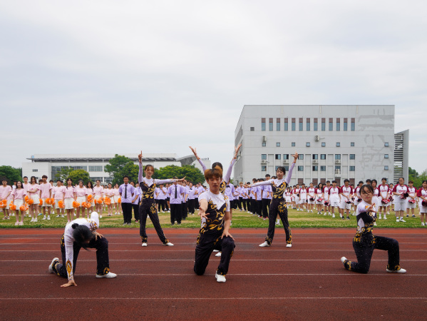 在集体大型健身操表演中,同学们以整齐划一的动作、激情满怀的姿态,展现了衢职学子积极向上的精神风貌和对健康生活的热爱追求。