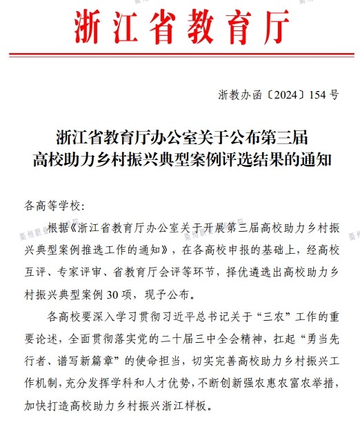 喜报!我校申报项目成功入选浙江省教育厅第三届高校助力乡村振兴典型案例