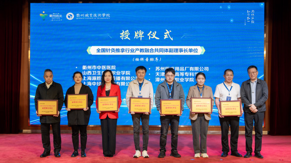 刘保延讲话。他希望共同体高标准打造“杨继洲针灸文化”品牌,助力针灸文化在世界的传播;高水平发挥全国针灸推拿行业产教融合共同体作用,扩大职业教育成果转化、加快针灸推拿产教高质量融合;高质量谋划好中医药康养复合型技术技能人才培养,为基层社区培养更多新质复合型的中医药康养人才,为针灸推拿行业注入新的活力和动能。