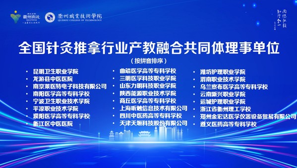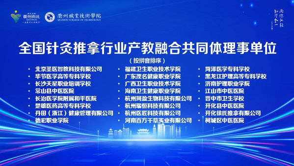 10月30日,全国针灸推拿职业教育产教融合高质量发展研讨会在我校举办。世界针灸学会联合会主席、国际欧亚科学院院士刘保延,中国针灸学会会长喻晓春,浙江中医药大学针灸研究院院长、浙江省针灸学会会长方剑乔,浙江省卫生健康委员会二级巡视员肖锋,浙江省教育厅职成教处二级调研员金仁康,全国中医药职业教育教学指导委员会副主任、安徽中医药高等专科学校校长韩军,全国卫生健康职业教育教学指导委员会副秘书长王瑾,安徽中医药大学第二附属医院(安徽省针灸医院)党委书记雷黎,浙江中医药大学社会合作处处长包利荣,浙江绿康医养集团股份有限公司董事长卓永岳,衢州市政协副主席黄伟青,市委一级巡视员、衢州市中医药发展促进会会长傅根友,中国针灸学会原副秘书长文碧玲,全国知名职教专家、原金华职业技术学院党委副书记胡野,安徽中医药大学学术委员会副主任委员、原亳州职业技术学院院长周美启,上海中医药大学针灸推拿学院院长赵琛,衢州市卫生健康委员会党委书记、主任徐天才,衢州市科学技术协会党组书记、主席俞继业,衢州市教育局党委委员、副局长曹晓华,我校党委书记徐须实,党委副书记、校长吕延文等出席,全国针灸推拿行业产教融合共同体成员单位近百位领导、嘉宾,校党委其他班子成员及300余名师生参加。
