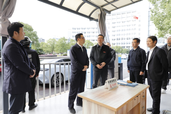 杜兴林一行走访检查了学校南门、数字校园中枢、消监控室、安全生产考核站、急救培训中心等场所,详细了解学校门禁系统的人脸识别、车牌识别、访客登记等智能化管理措施和运行情况,询问了摄像头的分布、视频存储、异常报警等监控系统的布局、功能和日常管理情况,并听取了学校运用大数据手段对学生行为活动进行实时化、数据化管理,精准、及时掌握学生校园生活动态的情况汇报。