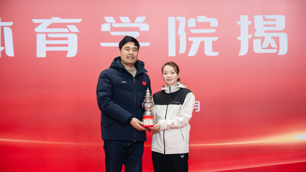 黄雅琼向学校捐赠2024世界羽联世界巡回赛总决赛奖杯作为纪念品。