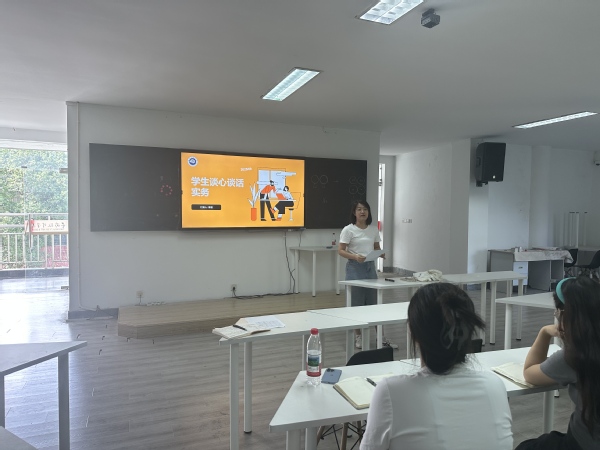 9月25日下午,学校在艺术楼多媒体教室举办班主任与辅导员专题培训,邀请李芸老师围绕学生谈心谈话主题分享经验方法,全体班主任及辅导员参加培训。